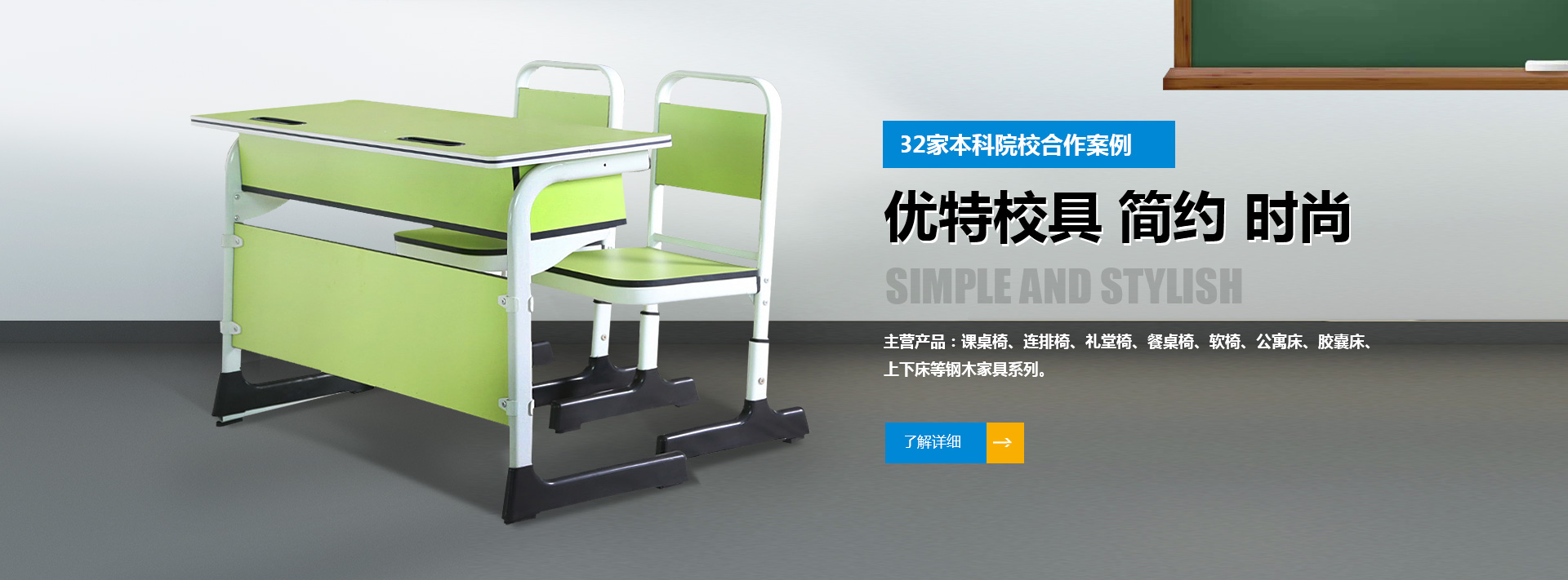 我公司位于河南省偃師市首陽山鎮石橋村北環工業區,是集研發、制造、銷售、服務為一體的綜合性學生課桌椅廠家,產品主要有課桌椅、連排椅、禮堂椅、餐桌椅、軟椅、公寓床、膠囊床、上下床等鋼木家具系列。可根據客戶需求提供定制化方案。